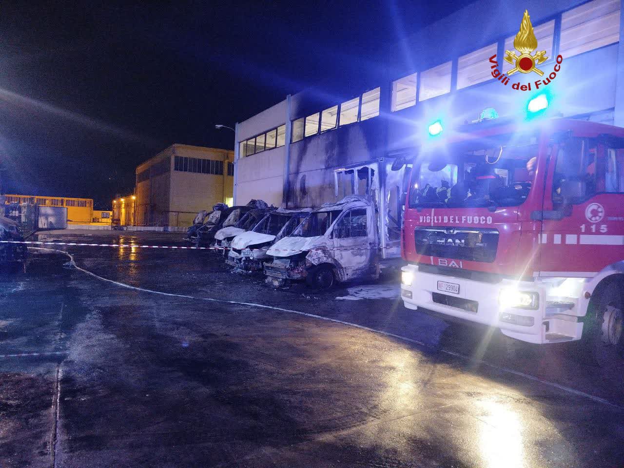 Le fiamme hanno interessato nove furgoni parcheggiati nel piazzale, con sei distrutti e tre solo parzialmente danneggiati. La struttura dell’azienda ha subito danni significativi, ma fortunatamente non si registrano feriti. I Carabinieri stanno indagando sulle cause che hanno provocato il rogo.